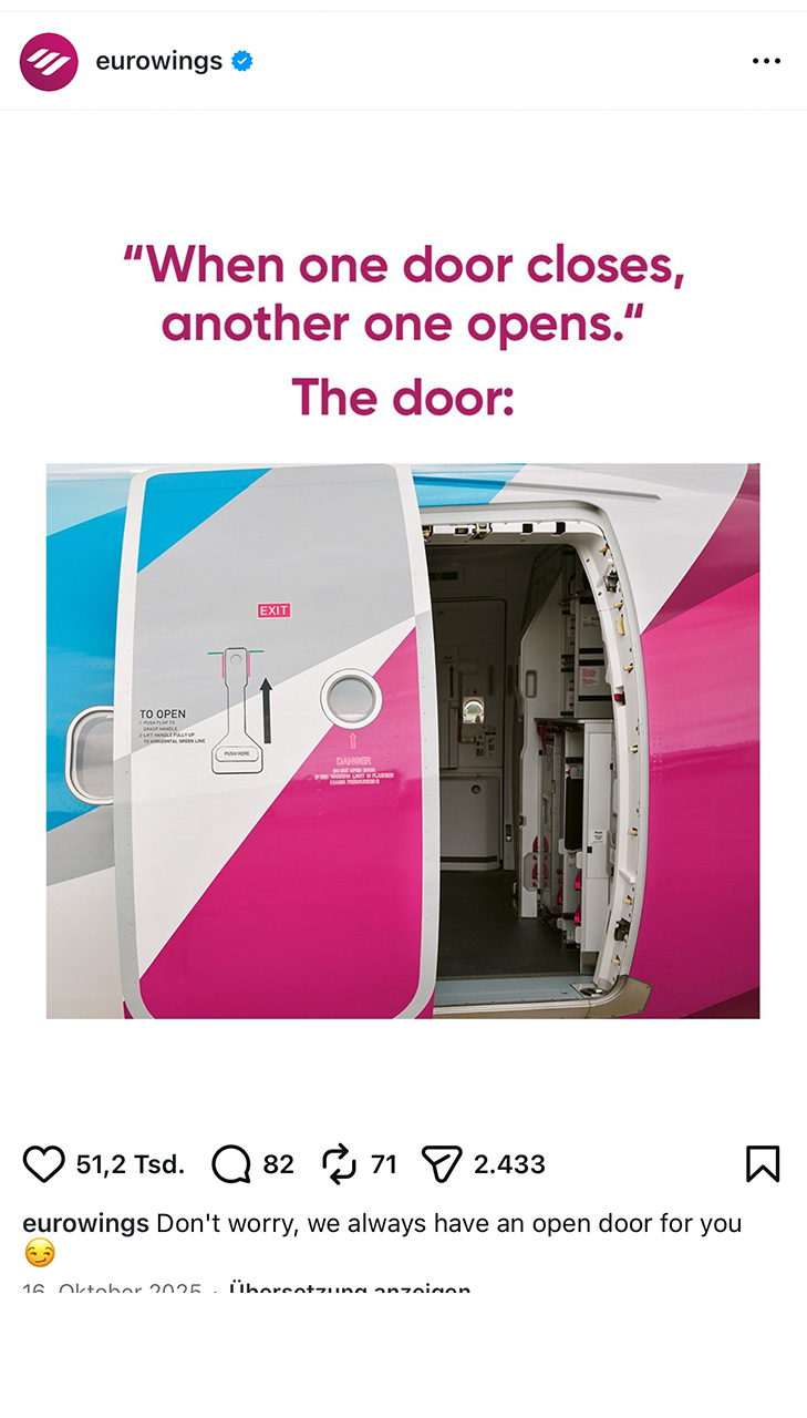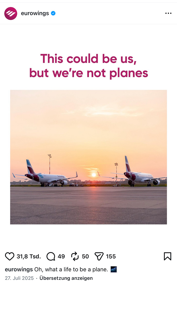 Im gemeinsamen Kick-off haben wir die strategische Basis gelegt: Channel Roles, Community-Management-Ansatz, Realtime-Prozesse und ein Reporting-Setup. Darauf aufbauend entsteht täglicher Social Content, der die Markenidee im Alltag der Kanäle erlebbar macht.